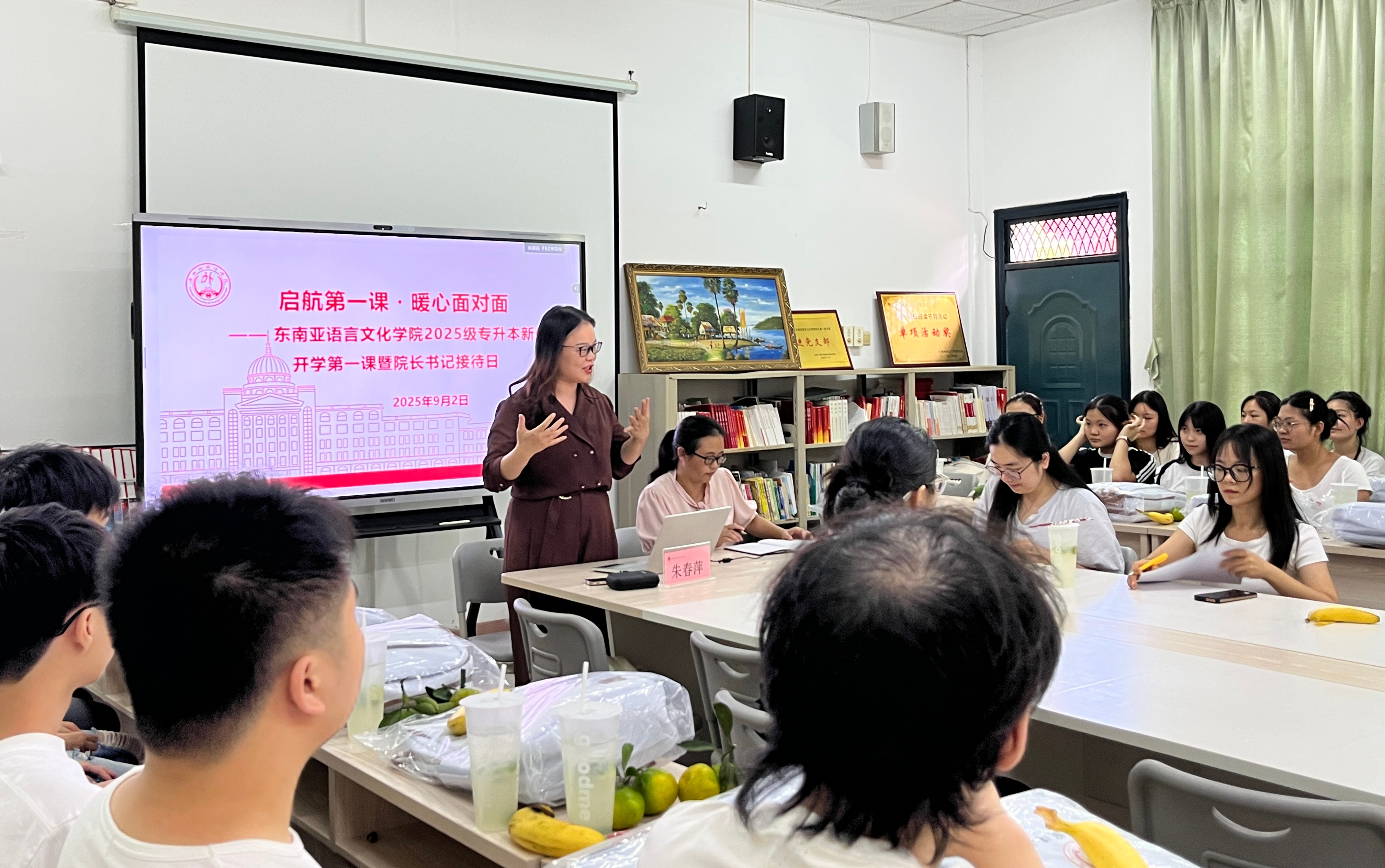 9月2日,东南亚语言文化学院在文化园114会议室隆重举行“启航第一课・暖心面对面——东南亚语言文化学院2025级专升本新生开学第一课暨院长书记接待日”活动。此次活动旨在帮助2025级专升本新生快速融入学院生活,明确学习与发展方向,感受学院的关怀与温暖,为他们的专升本学习生涯拉开崭新序幕。