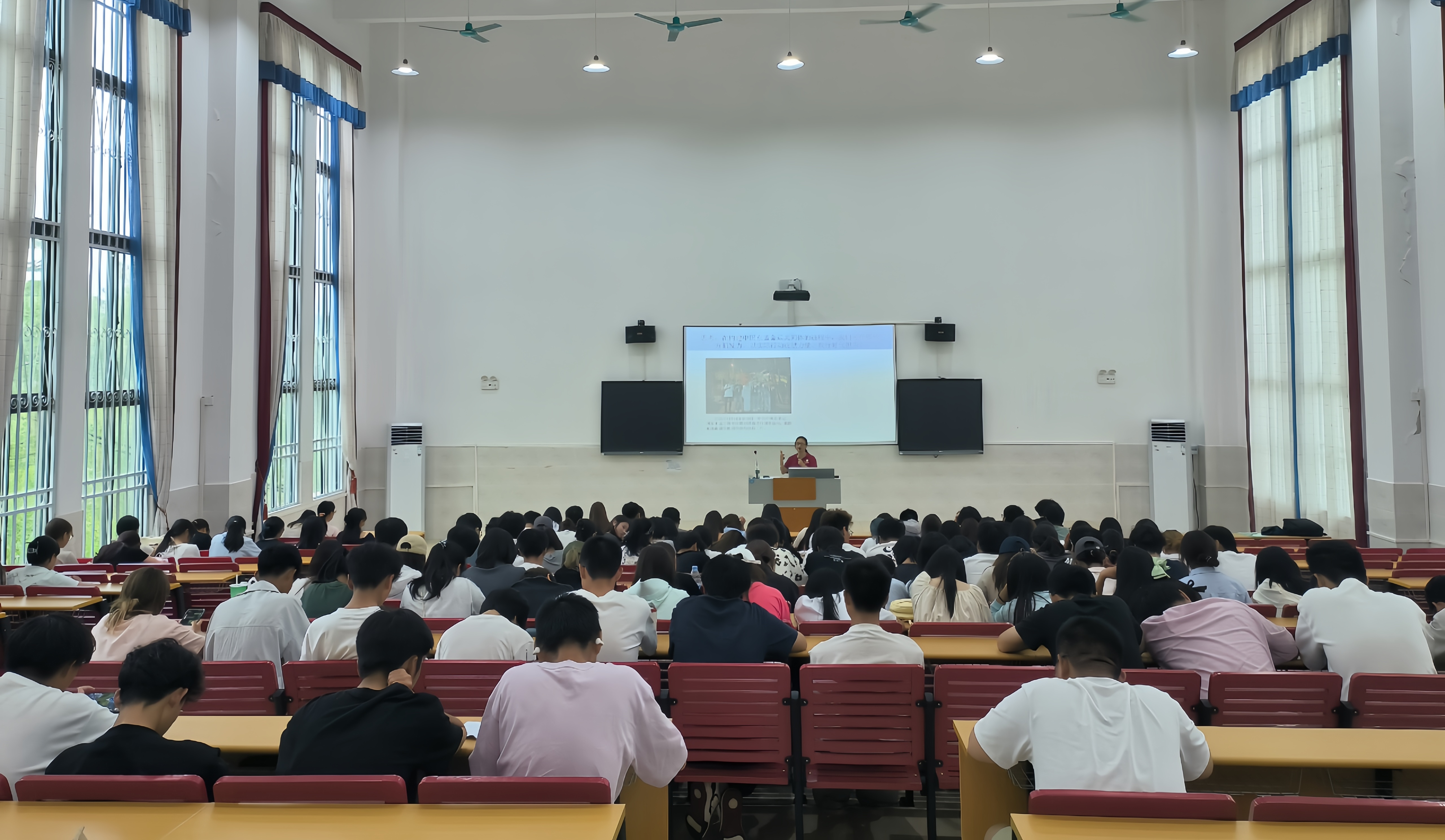 (教师党支部书记阮娇龙为空港校区新生授课)